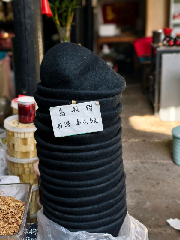 这个乌毡帽跟我们小时候爷爷辈带的乌毡帽还是有很大区别,那个时候他们带的乌毡帽都是笔挺的,上图的乌毡帽感觉没什么刚骨似的。
