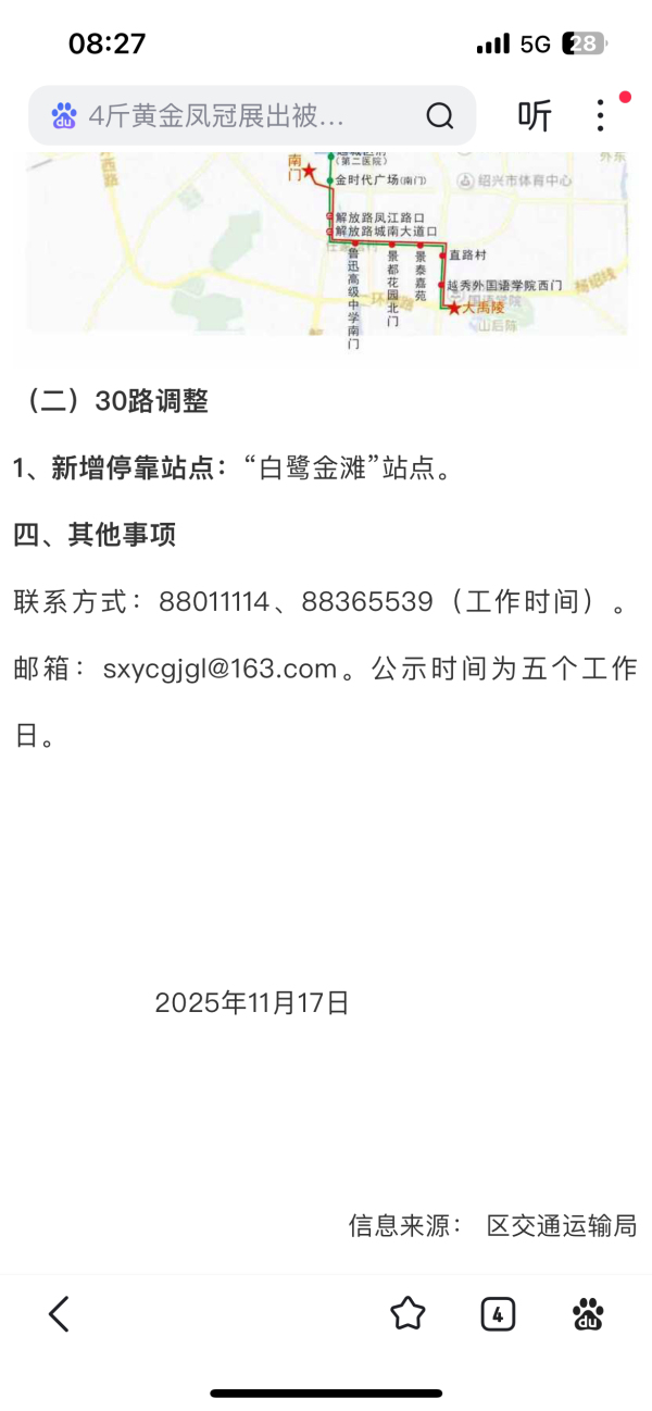 回 第26楼(休闲一族)的帖子 休闲一族:2路是有知名度的老公交线了,不宜取消线路名称,建议还是要保留,起始点还是回到原来的火车站至大禹陵,具体线路可以再调研一下,留住老绍兴的记忆 (2025-12-16 11:18)