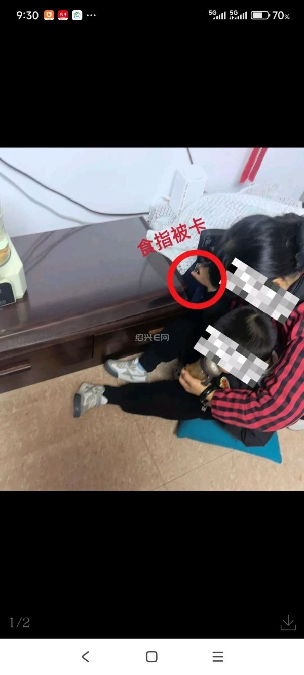 原来,钱先生5岁的儿子在玩耍时,不小心将右手食指伸进了一台碟机的装饰圆孔里,结果被牢牢卡住,怎么也拔不出来。家长尝试借助了肥皂水、洗洁精等物品,不仅没成功,反而让孩子因疼痛而哭得更凶,无奈之下,只能报警求助。