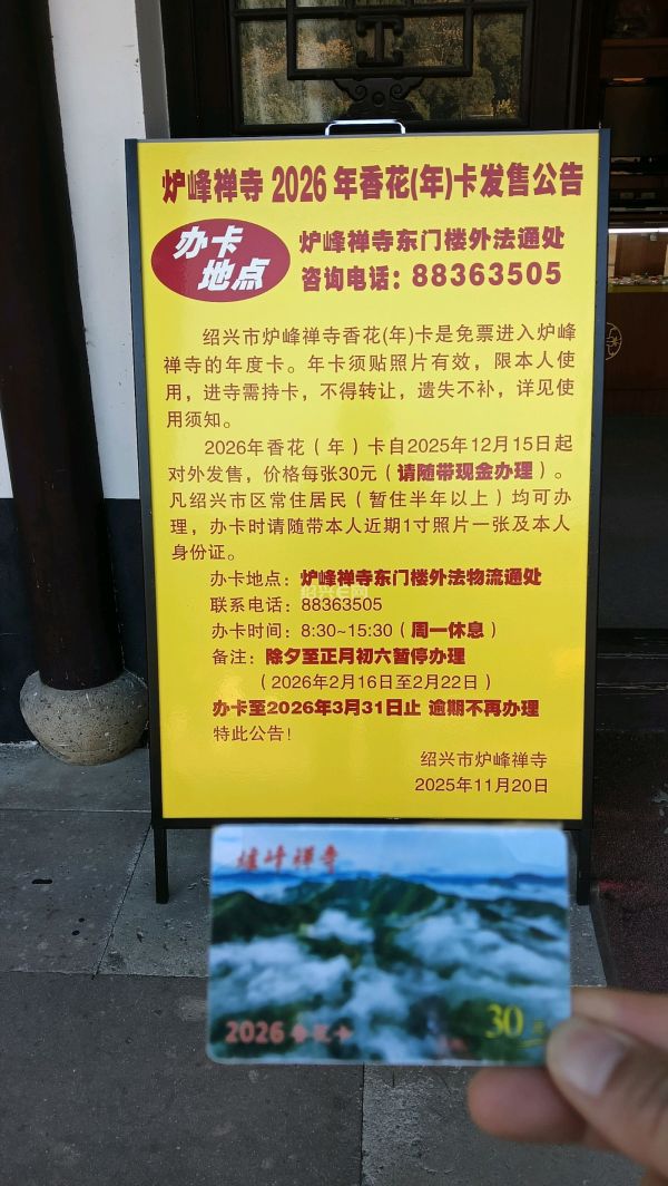 香炉峰年卡开始办理了(要2026年可以使用),就在香炉峰正门口,带30元钱和一寸照片就可以办