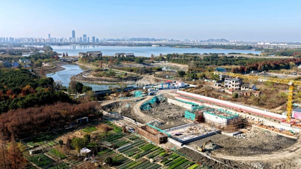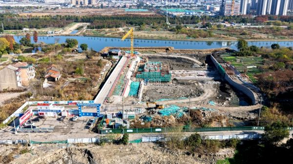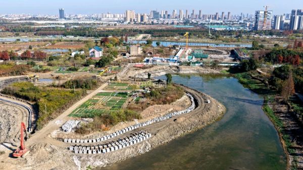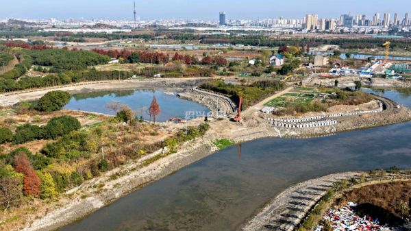 湖南面东面镜堤持续推进中,湖东传媒中心双塔,绍兴银行双塔,档案馆进度也可以。