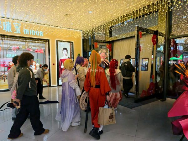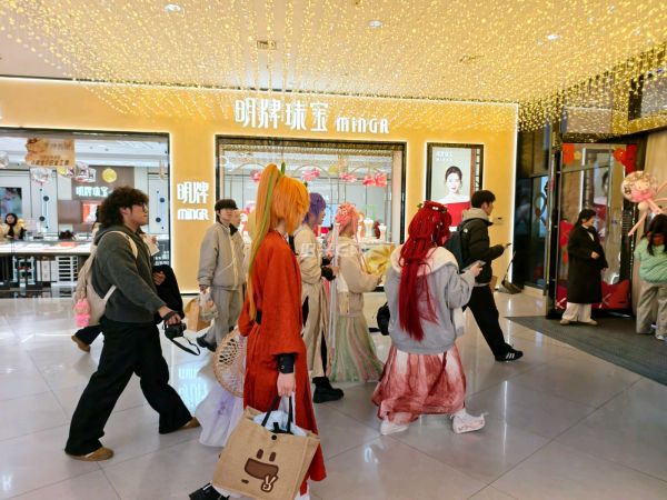银泰城内,一群年轻人身着特色cos服现身,造型各异吸睛,尽显年轻活力与创意。
