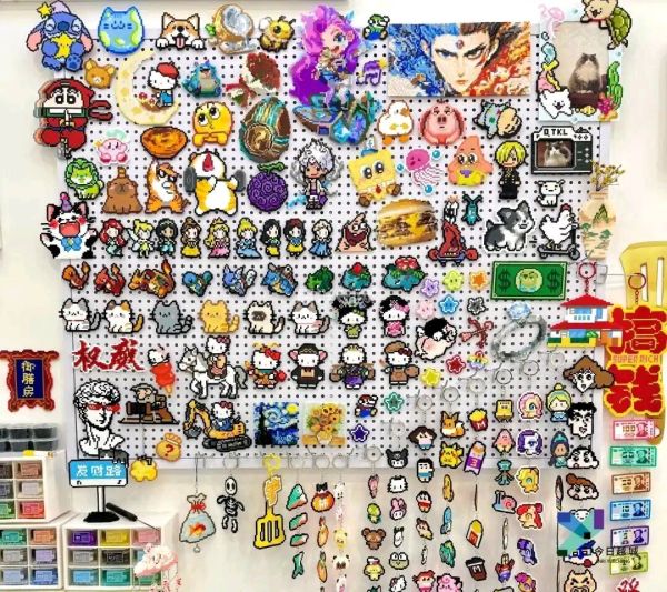 周六下午,记者来到位于王子商业街的“不止手作”,看到店内座无虚席,不少人正手持镊子,将一颗颗米粒大小的彩色塑料豆,对照着图纸整齐地码放在豆板上,一拼就是一下午。