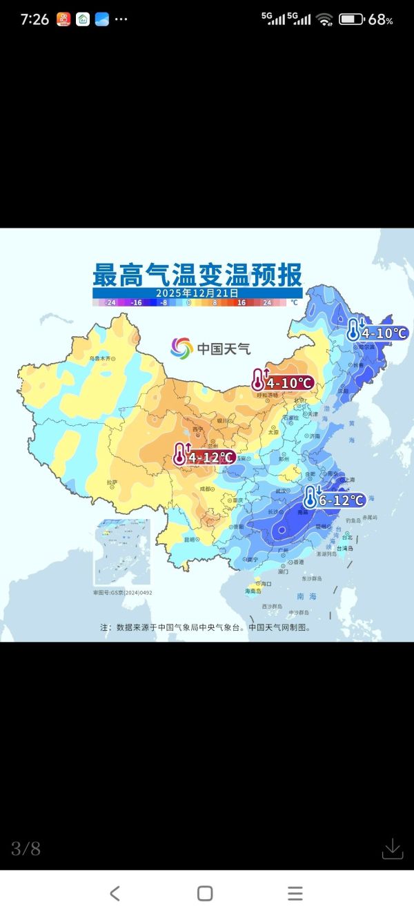 然而,短暂的回暖后,23日后期至24日将有一股新的冷空气补充南下,再次带来降温过程。气温波动明显,部分时段风力较大,防寒防风措施不可松懈。
