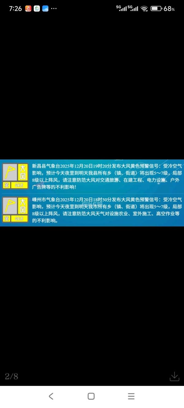 今天(12月21日),受一股较强冷空气自北向南影响,绍兴将出现一次明显的降温、降水和风力增大过程。天气由阴有时有小雨逐渐转为阴到多云,风向为偏北风,风力将由2~3级增强至下午的3~4级,阵风可达5~7级,部分地区已发布大风黄色预警信号。