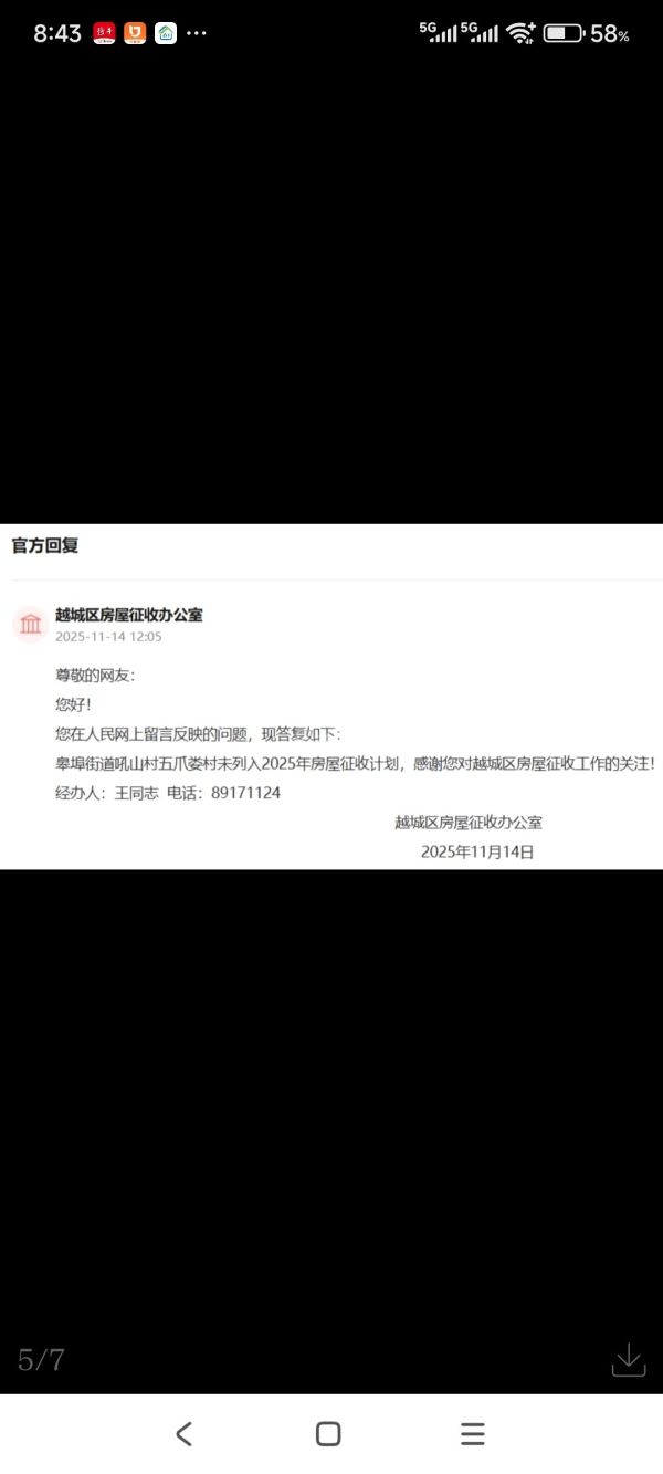 问:因为看到五联工业园区已经在拆迁了,也想问一下五联村大概什么时候会启动拆迁?望回复