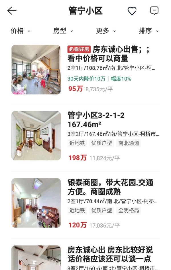 这几天我一直在看房子,主要是看柯桥城区和市区的老破小,比起21年高峰期普遍都跌了快一半了。