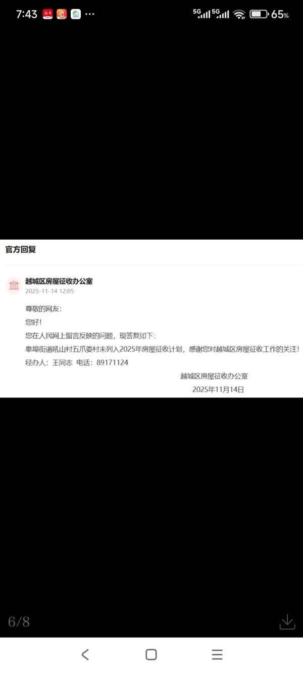 问:请问领导,绍兴市越城区陶家楼底什么时候拆迁,我们同一幢对面已已拆迁,谢谢。