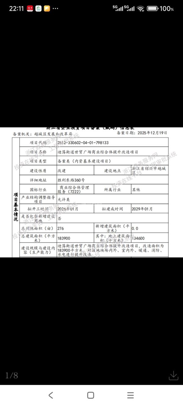 12月19日,绍兴越城区迪荡街道世茂广场商业综合体提升改造项目发布。迪荡街道世茂广场商业综合体提升改造项目,改造面积为183900平方米,对该地块场内外、室内外、暖通、消防、水电进行提升改造。