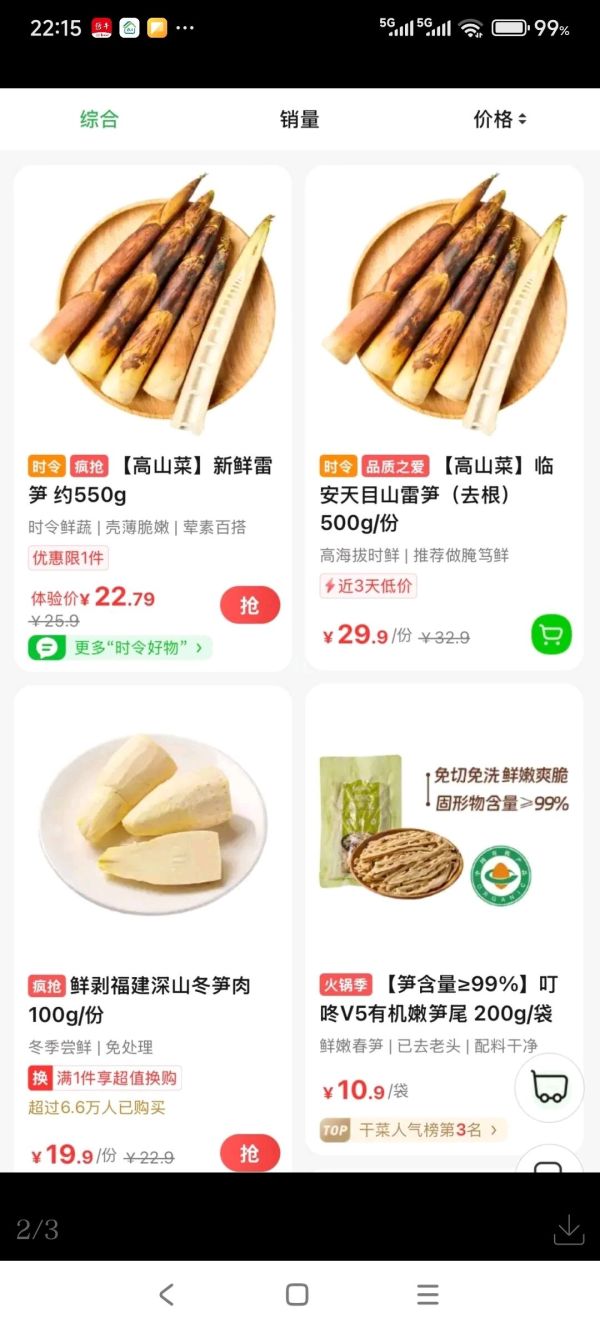 线上平台也为消费者提供了更多尝鲜选择。在叮咚买菜上,新鲜雷笋已上架销售,雷笋是春笋中较早上市的品种,其中新鲜雷笋售价22.79元(550g),临安天目山去根雷笋售价每斤29.9元;此外,平台还推出袋装春笋条、有机嫩笋尾等预处理产品,为消费者提供了便利。在美团小象超市内,同样有新鲜雷竹笋和去皮雷笋在售,满足不同消费者的需求。