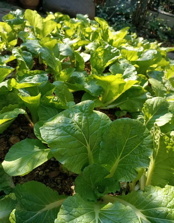 有太阳的日子,在菜上泼点水,助菜们生长。