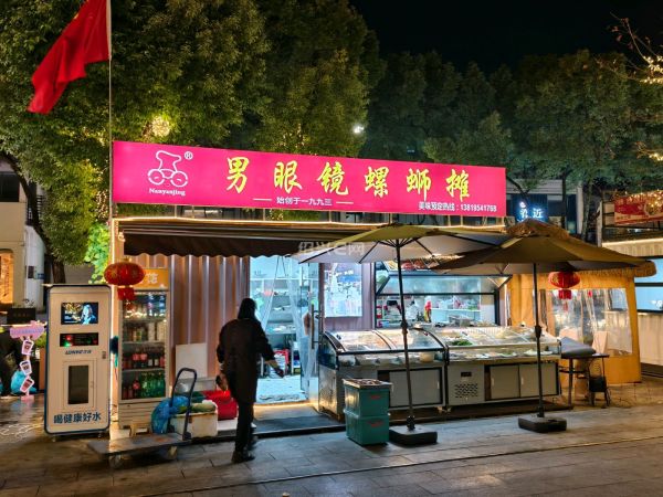 夜晚的越王城,男眼镜螺蛳摊前人气爆棚,这家1993年创立的老店,几经沉浮,靠着地道口味圈粉无数,老板几十年的餐饮经验,把小小螺蛳摊经营得热火朝天。