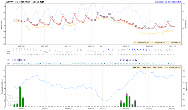 完全是预测,因为时间较远,但是数值给出了反应,做个预期。!!!从上游很多地市也在2026年1月3日这个时间左右给出了雪的反应,目前确定性很差,希望吧!
