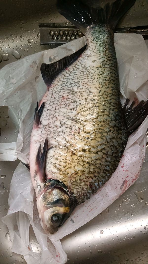鳊鱼也不贵10元一斤,一条有一斤七两,晒鱼干还是不错的。
