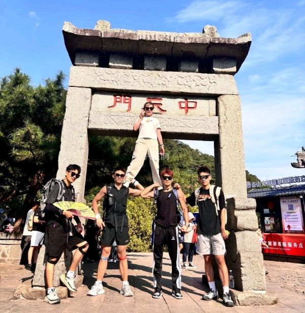 泰山有游客请多位陪爬,是为拍摄个性照片