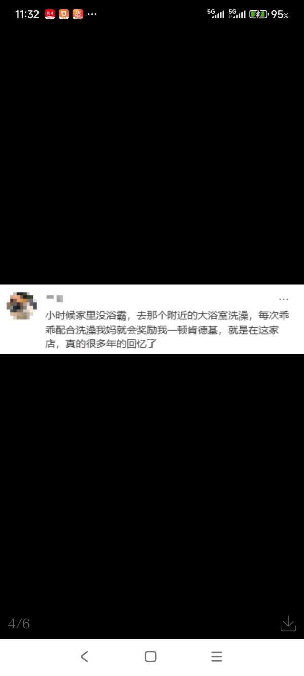 “每次乖乖配合洗澡我妈就会奖励我一顿肯德基,就是在这家店,真的很多年的回忆了。”