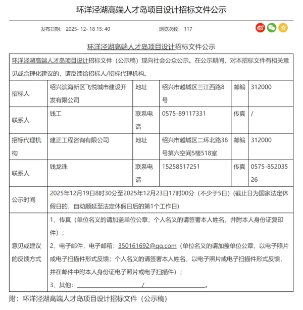 建设规模:为推动闲置土地的提质增效,解决高端人才安居需求,促进产城融合和优化人才环境,拟在袍江洋泾湖区域打造高端人才岛,用地总面积21607.3㎡,容积率为1.01-1.05,总建筑面积约35000㎡,其中地上建筑面积约23000㎡,地下室建筑面积约12000㎡,主要用于人才房和相关配套设施建设等。建安费约21500万元,设计招标估算价约301.67万元 。