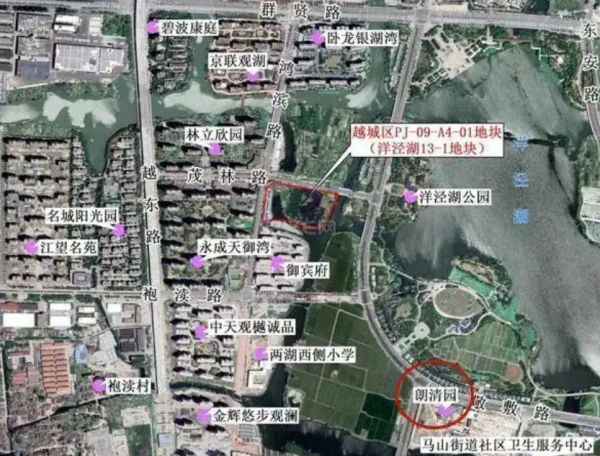 洋泾湖13-1号地块(越城区PJ-09-A4-01地块)位于绍兴市越城区,东至陶洋江,南至现状河流,西至鸿滨路,北至茂林路,地处袍江两湖区域核心,西侧毗邻洋泾湖公园,南侧约四五百米为在建地铁2号线洋泾湖站,周边配套包括宝龙广场、柯灵小学教育集团、越州中学等。 该地块于 2022年9月29日 通过网上拍卖方式出让,由 绍兴滨海新区飞悦城市建设开发有限公司 以 底价38300万元 竞得, 成交楼面价为16881元/平方米 , 溢价率为0% 。三年多时间一直闲置,成了大爷大妈们的菜地。如今启动落地人才项目,也算为两湖发展提供了助力。