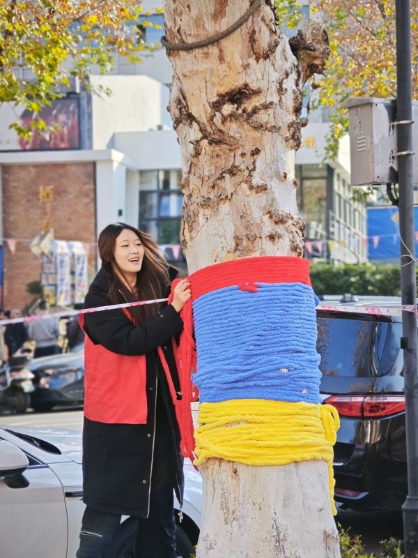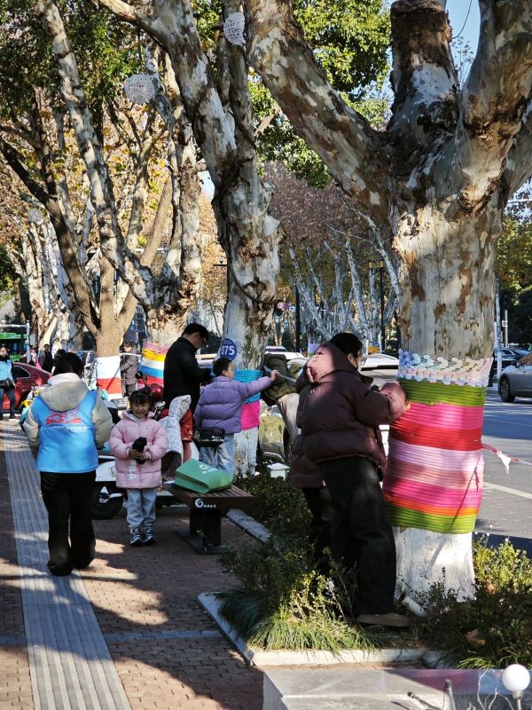 剡溪路街头的树木纷纷穿上了色彩斑斓的“冬装”