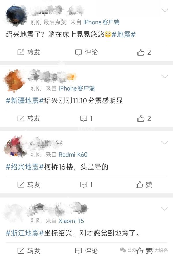 刚刚,不少网友向绍兴头条小编爆料说:地震了!!!绍兴多地震感明显!