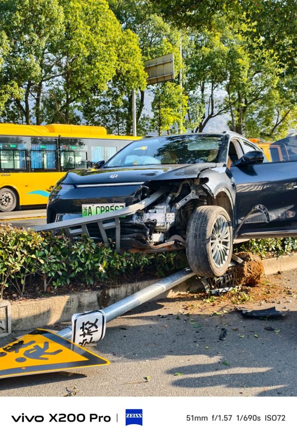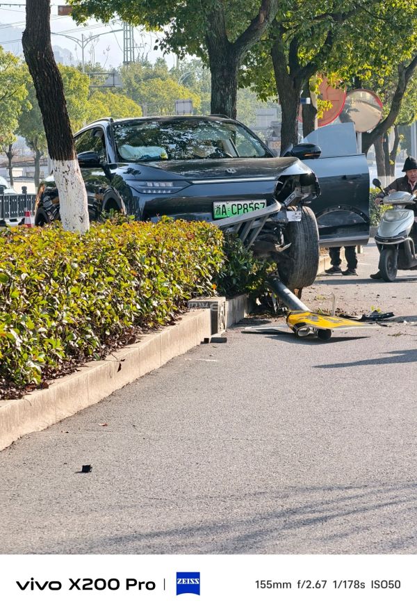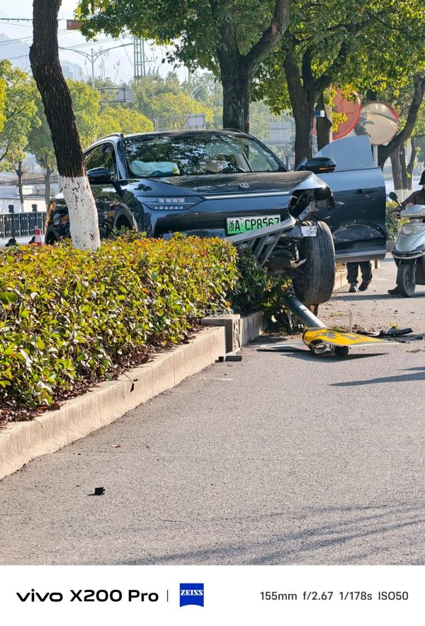 把学校慢行的警示牌都撞倒了,多少有点讽刺了