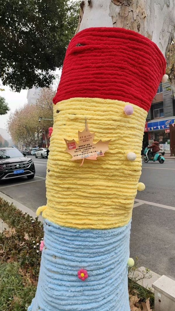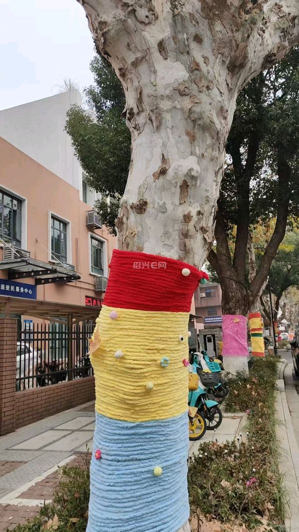 不知道是谁出的主意,绍兴街头的梧桐树这样子一装扮,不但看上去颜值杠杠的,而且冬天对树还能起到保暖作用,真是太有创意了