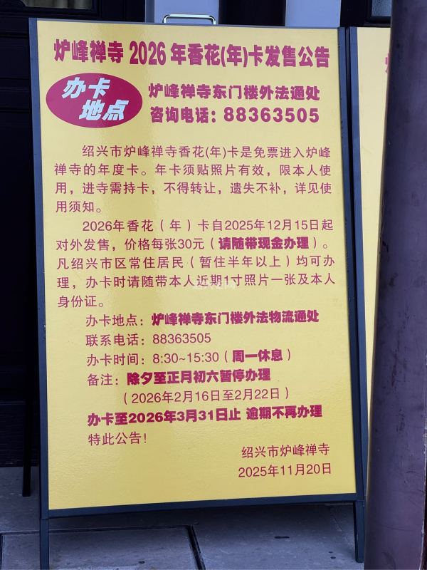 其实香炉峰的香花卡就得在香炉峰办,其它寺庙为方便购买也可开几个办卡点。
