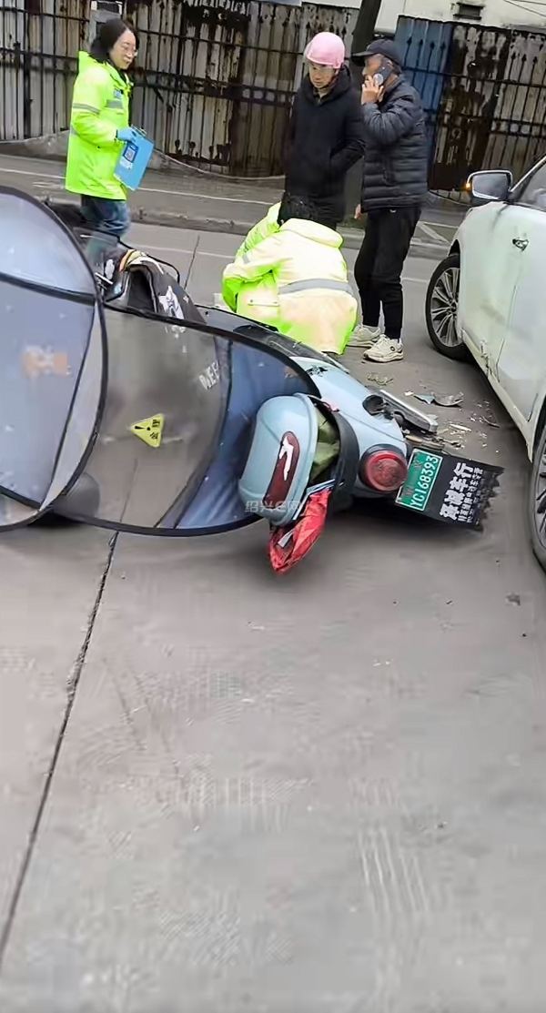 这明显又是一起电瓶自行车私装雨篷发生的交通事故。依照有关规定,电动自行车是不能安装雨篷的,它会给车主带来安全隐患,增加事故发生率。