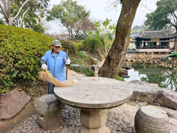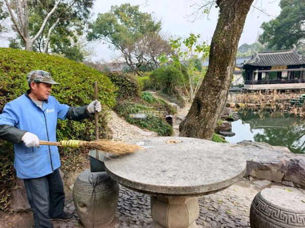 沈园的石桌上有游客吃过的瓜子果壳,完了后起身离开,有其他游客想坐一看这样转头就走。碰巧看见一位清洁工在扫地,上前和他说了,这清洁工说这种游客已经算不错了,没有把吃剩的垃圾扔地上已经是婆婆万福了。确实,这样的游客已经算文明了,但最好把垃圾装袋子里扔垃圾桶就更好!