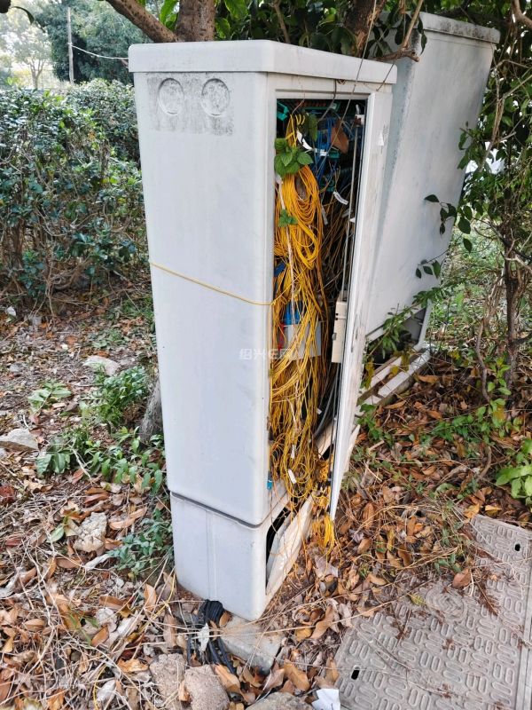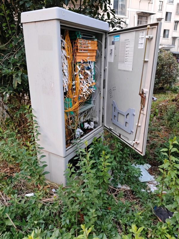 后墅坊家宴中心后面的数据线电柜门敞开着,存在一定的安全隐患。