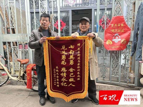 1月5日下午,东关街道马家桥村村民、获救儿童的家人将一面鲜红的“见义勇为”锦旗送到了朱成法家中。“真的太谢谢您了,不然后果我们真的不敢想象……”感激之情,溢于言表。