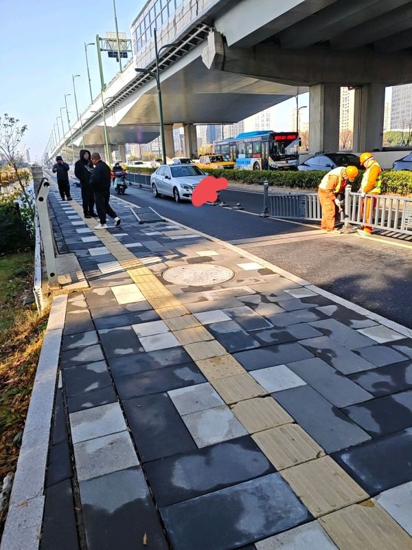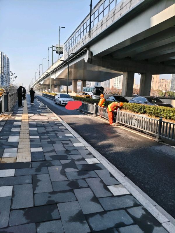 山会大道梅山江大桥东坡西向东车道辅道发生单车交通事故,车子撞到了护拦,路政正在修复。