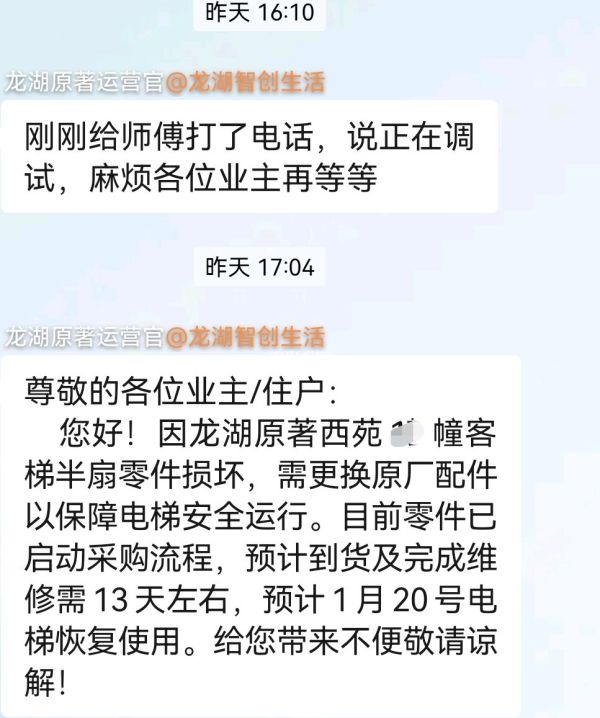 某小区物业费全柯桥数一数二。电梯等了一天一夜说还需寄配件,还要停运13天。本来就人口多楼层高。就算年轻人可以爬楼梯。冬天孩子早上本来就起床困难,争分夺秒。上下学又多数是老人接送。真是要命了~