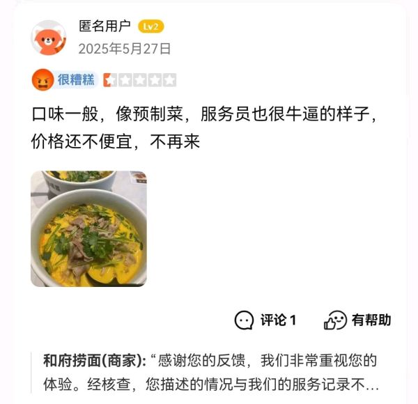 1月7日,记者就此事咨询和府捞面客服,对方回应,和府捞面的餐品由中央厨房制作,是不属于预制菜的。记者梳理发现,除对餐品是否为预制的质疑外,部分网友还认为,和府捞面定价偏高,餐品品质与价格不符。