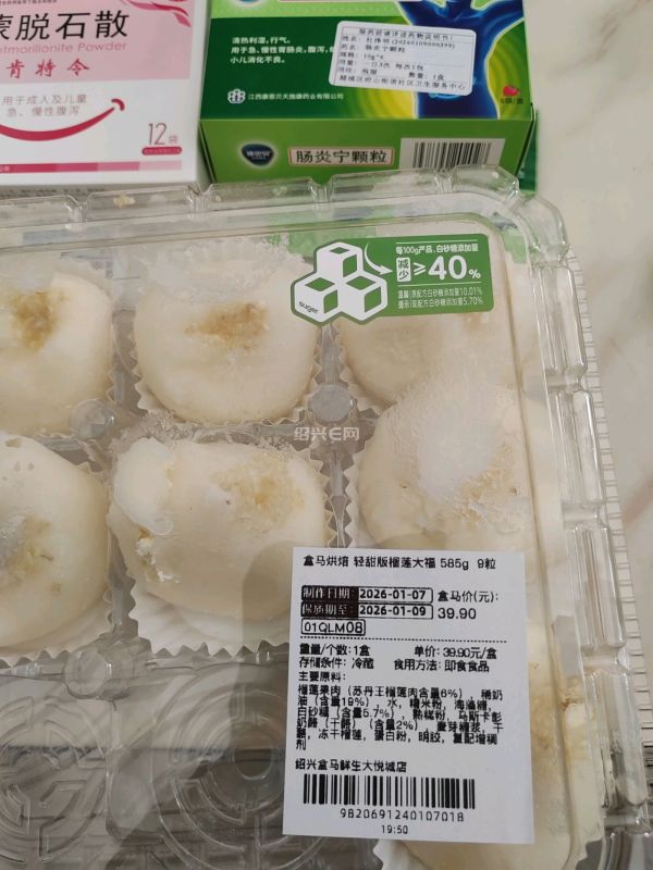 Re:本人7号晚上九点多在绍兴大悦城盒马超市买了榴莲大福甜品,8号晚上吃 ..