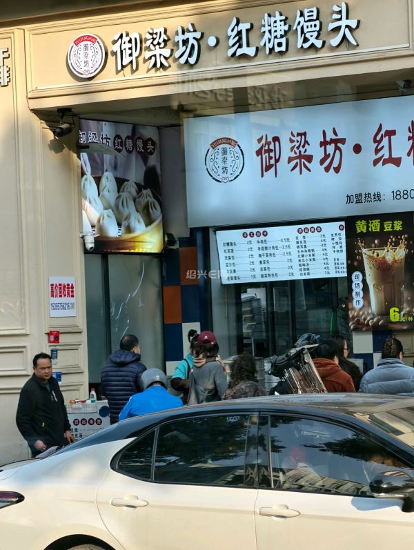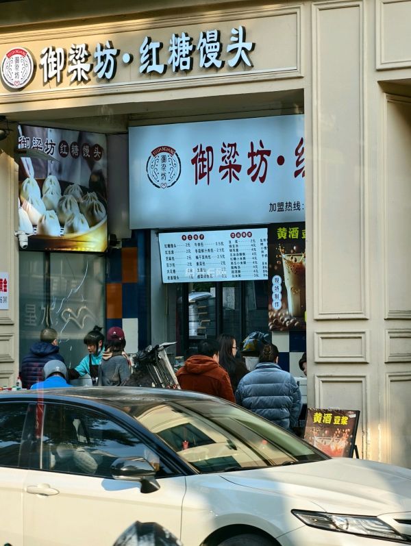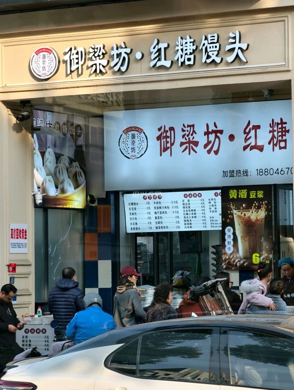 中兴路御梁坊红糖馒头店,应该是下午时分吧,排队买馒头的人有点多。