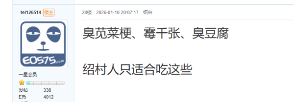 回 8楼(老鳖) 的帖子 老鳖:宁波人也吃臭啊,金华人最有可能,这论坛青蛙人上蹿下跳不少(2026-01-11 11:25)