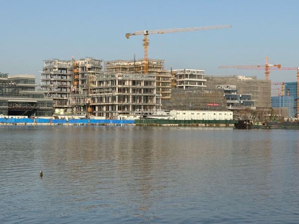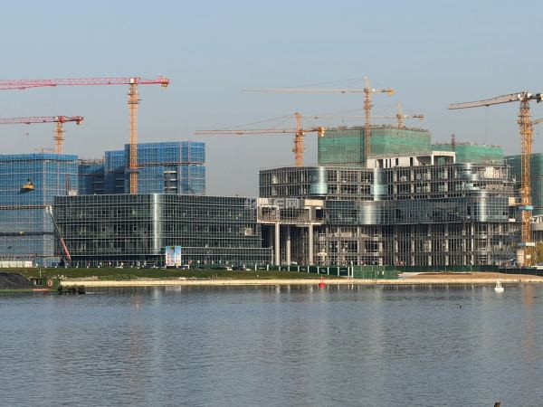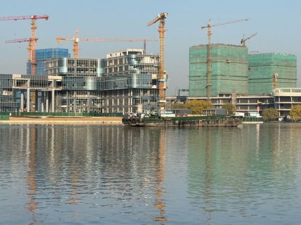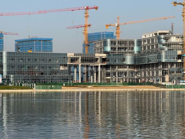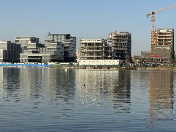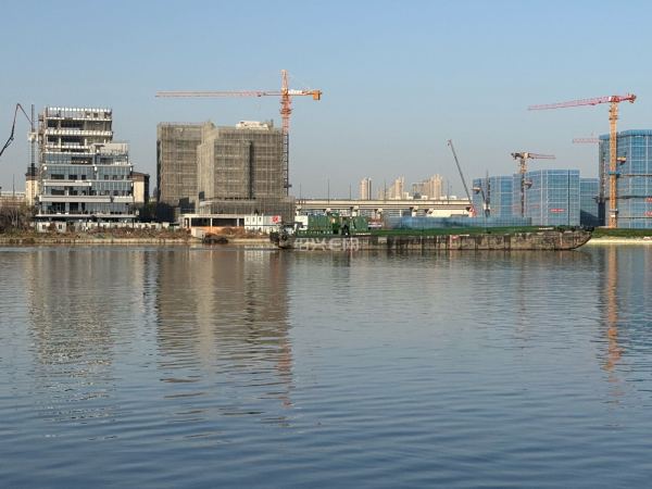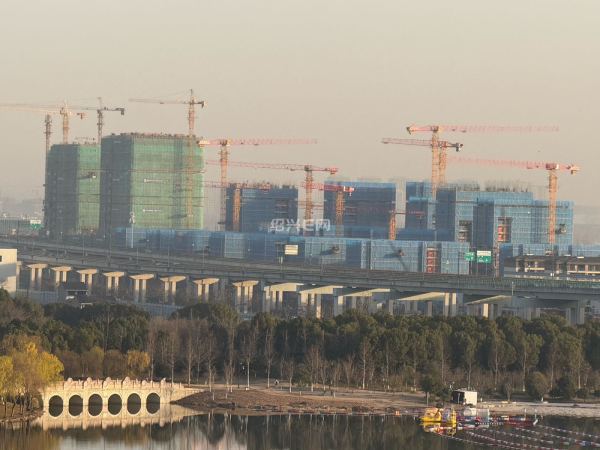 冬日的绍兴鉴水之畔,鉴水科技城建设现场一派热火朝天的景象。塔吊林立、机器轰鸣,数栋现代化建筑主体已初具规模,玻璃幕墙与钢结构框架在阳光下熠熠生辉,窑江湾鉴水科创地标的轮廓已渐渐清晰。