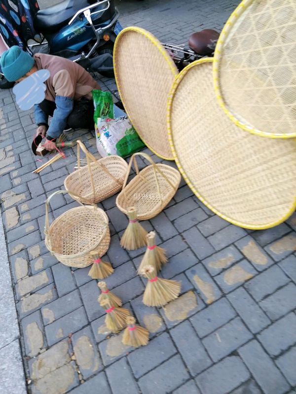 银东关真有不少老手艺,昨天遇见钉称师傅,今早又看见有师傅在做“先帚”,边上还放着些打好的竹篮,手艺应该不错