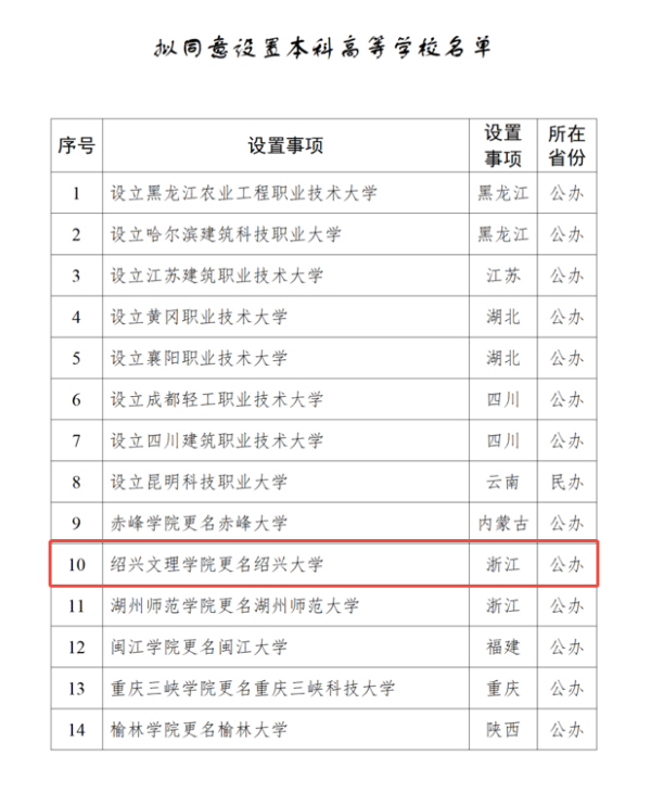 1月12日,教育部发布《关于拟同意设置本科高等学校的公示》。