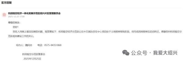 问:领导您好,了解到杭绍临空公铁水空码头项目已与十月份完成勘察设计招标并进行项目红线公示,想了解该项目目前进展情况。因年关将至,很多租客怕拆迁,可能都想着搬走,有关民生,请问何时会进行拆迁。