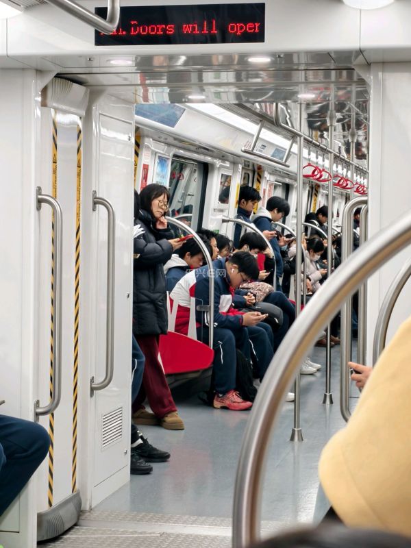 清晨6时45分左右,绍兴鲁迅故里地铁站口电动车停放满满当当,车厢内坐满身着校服的学生。