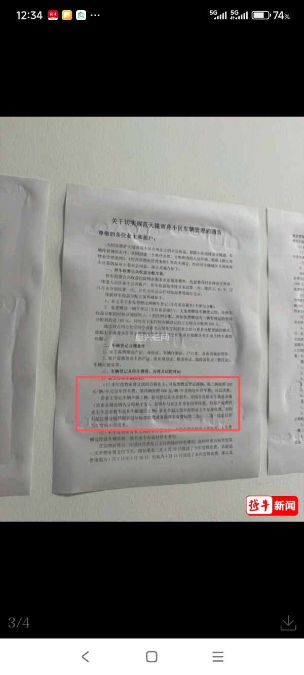 “新的停车收费标准和车辆管理细则是由业委会敲定的,我们物业只是负责执行。”曹经理说:“我们的物业系统内部可以查询到,不少住户名下有4到5辆车,远远超过了小区原本每户可免费登记两辆车的数量。天镜南苑东区长期存在停车位紧张的问题,我们推行新规,是希望让有限的车位能物尽其用,优先满足真正有需要的业主。”