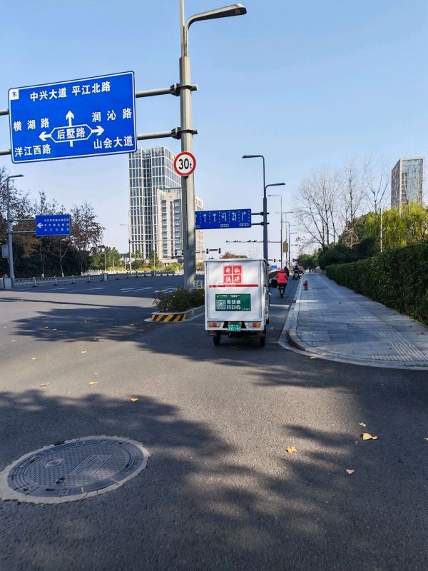 舟山的EMS三轮车怎么开到绍兴来派件了?好奇怪。