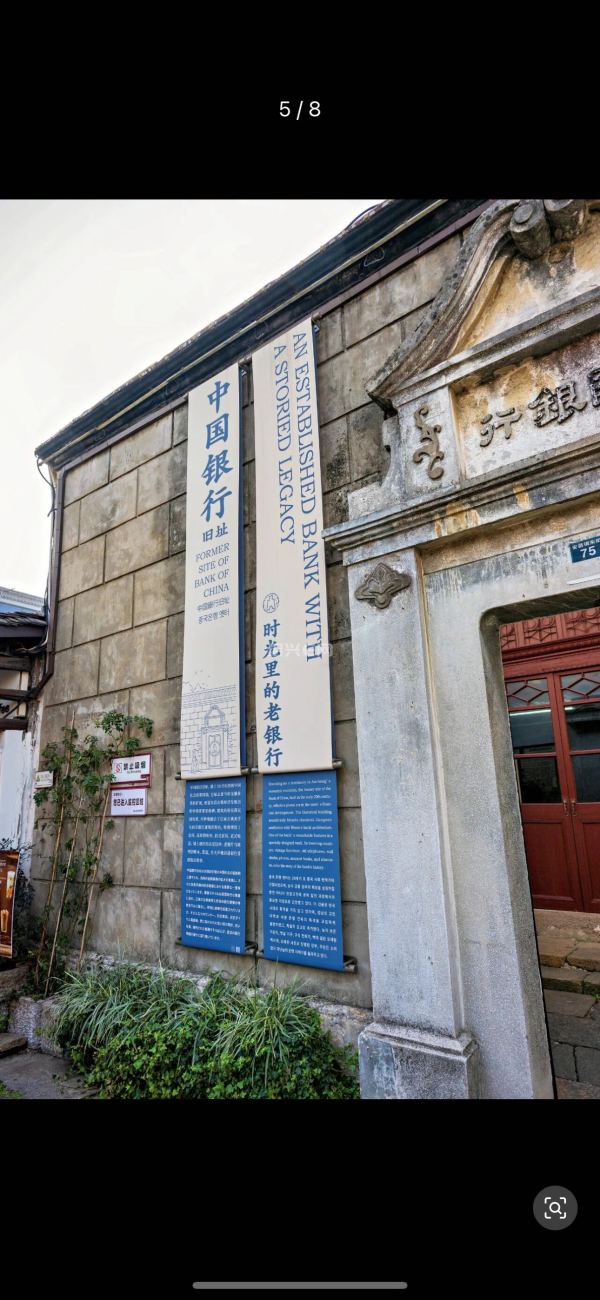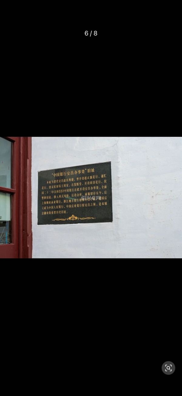 在绍兴安昌古镇这条街上,中国银行旧址是一座引人注目的老建筑,门楣上“中国银行”四个隶书大字古朴苍劲,清晰可见。安昌古镇上的中国银行旧日址位于东街75号。1933年中国银行在此设立办事处。当时这里是棉布、大米、蚕茧集散地,有商号九百多家,银行提供信贷金融服务。旧址保留着老式金库,保险柜、账桌、台灯、透气窗等历史陈迹,再现了当年办公营业的场景。
