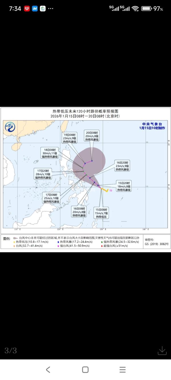 今年第1号台风“洛鞍”(热带风暴级)于1月15日下午2点钟在菲律宾以东洋面生成,其中心位于菲律宾马尼拉东偏南方向约1010公里的洋面上。