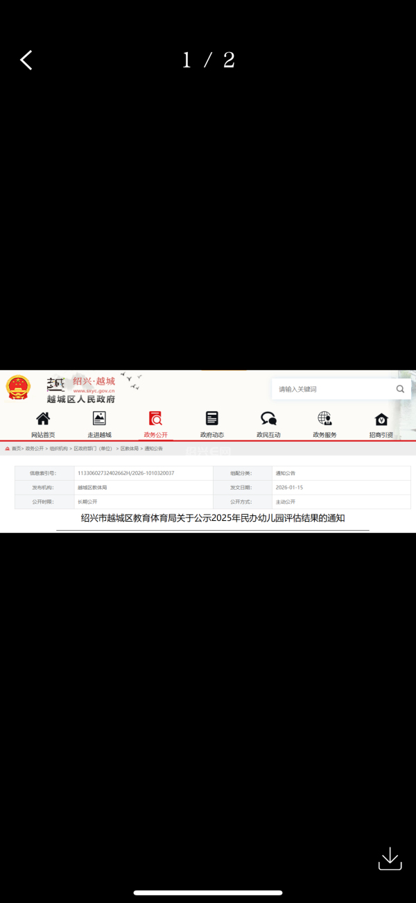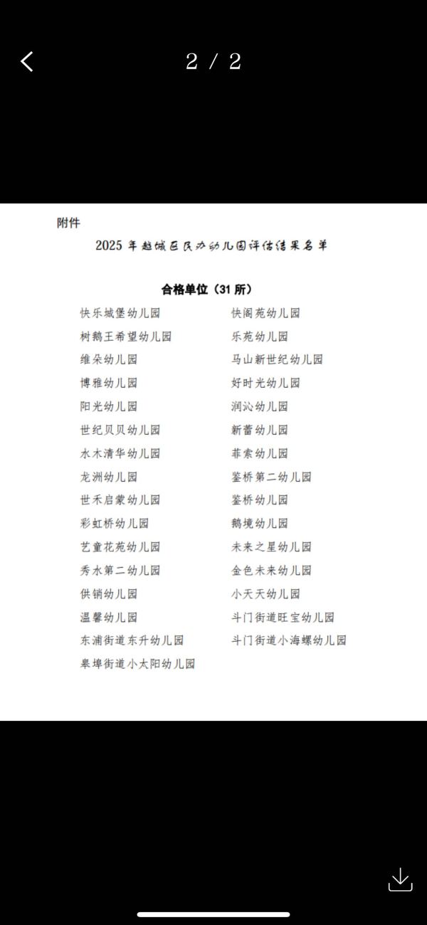 近日,绍兴市越城区教育体育局发布一则《关于公示2025年民办幼儿园评估结果》的通知。