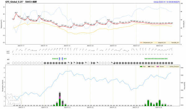 绍兴平原地区20-21日有望见雪,但总量不大,是否有积雪需要临近看老天发挥!平台期太长见雪效果就差,冷暖交融巅峰期长那么效果是明显的。今天数值预报是EC明显调弱,水汽较差,目前可信度较高。虽然有降雪条件,但数值支持较差。