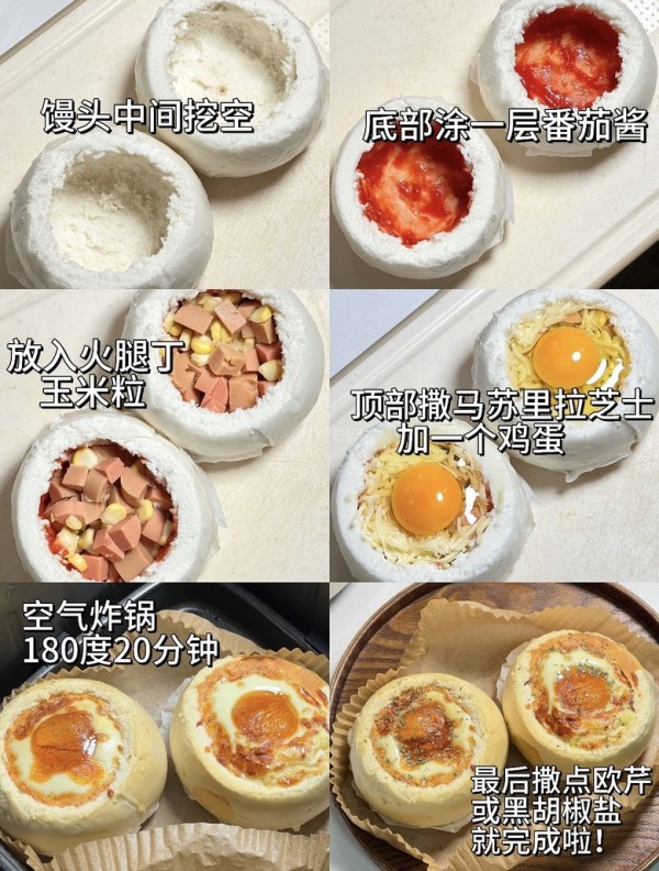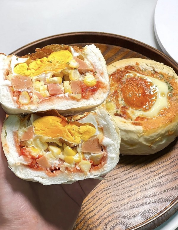 馒头+鸡蛋+火腿+玉米+芝士(可无)