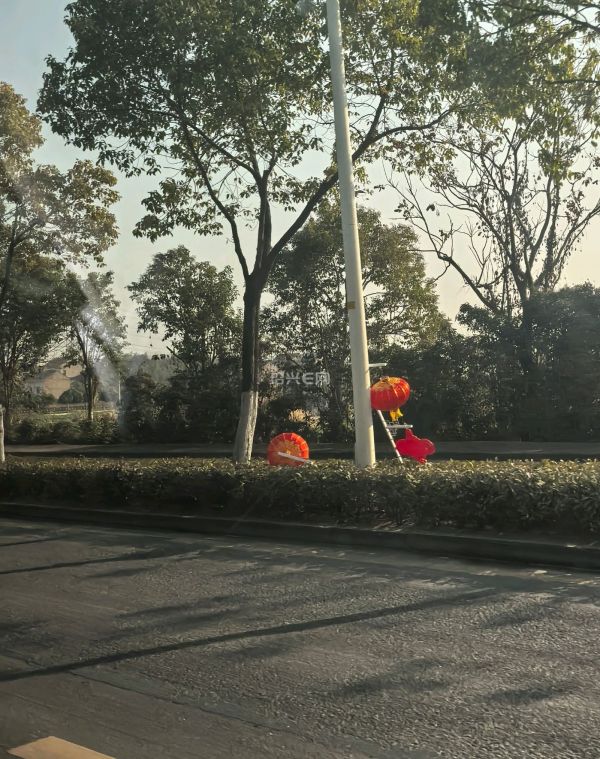今天在致远大道上,看到路边已经在挂过年的红灯笼了!